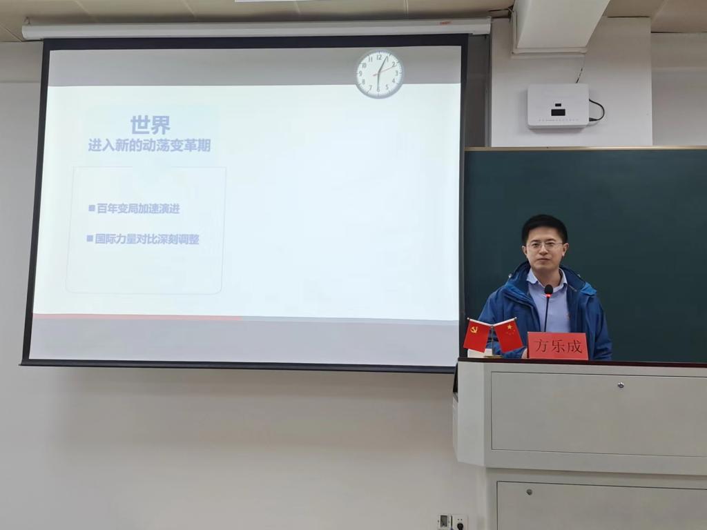 方乐成老师的课程深入浅出,案例具体生动,激发了学员们的热情回应和深度思考。他勉励大家,未来机遇与挑战共存,作为一名当代的大学生、研究生,只有认真学习,不断提升专业水平,同时保持对国家大事、世界形势的高度关注,才能成为有本领有格局的优秀人才,才能肩负起中华民族伟大复兴重任,才能在百年未有之大变局中牢牢把握主动权。
