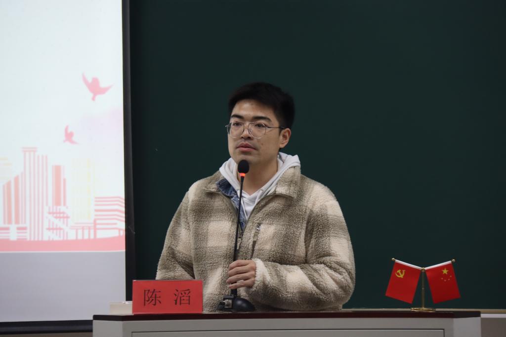 最后,陈滔老师寄语同学们,作为新时代的新青年,应坚定不移地听党话、跟党走,立志做有理想、敢担当、能吃苦、肯奋斗的社会主义建设者和接班人,把争做一名新时代好青年同争做一名合格的共产党员的目标融合起来,用合格党员的要求武装自身头脑,用合格党员的标准约束自身行为,用合格党员的理念提振自身精气神儿,阔步向前,为中国式现代化贡献一份力量。