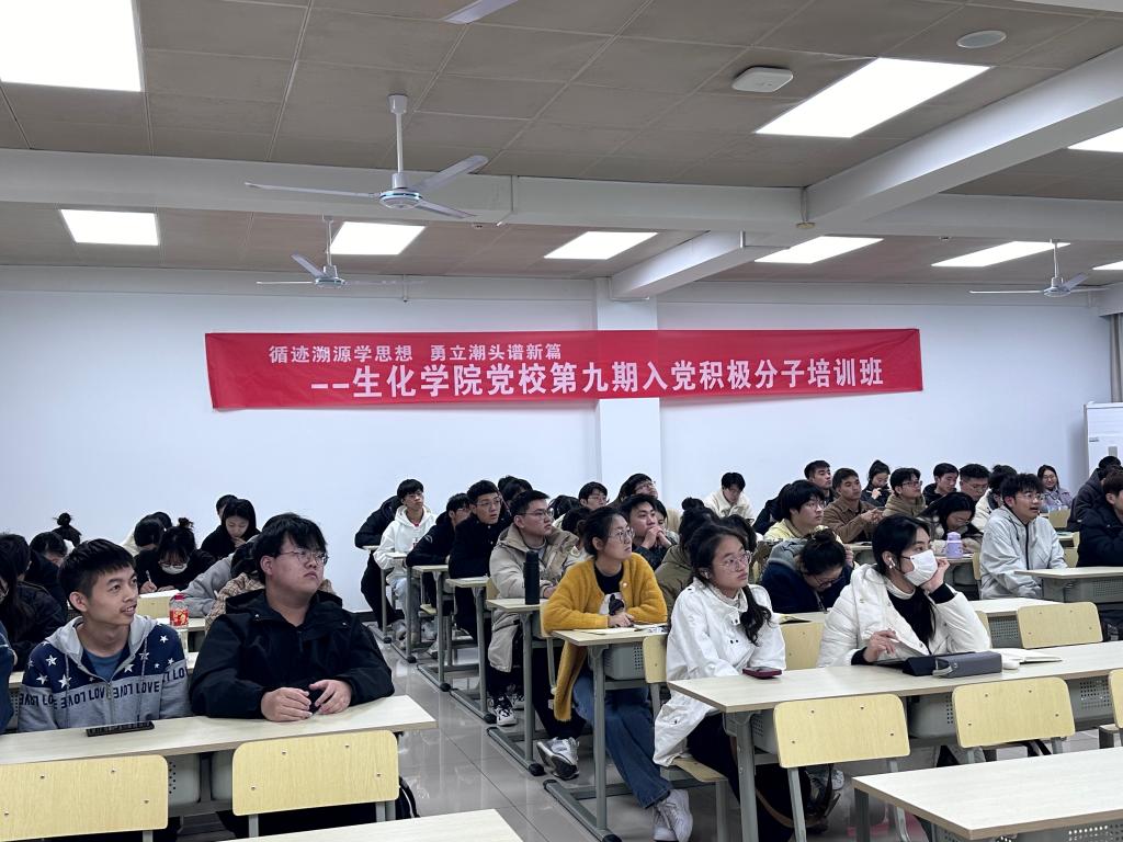 11月28日18:00,学院党校第九期入党积极分子培训班第七课在A2-418进行,制药工程专业学生党支部书记周文晟老师以“赓续历史文脉,谱写当代华章”为题讲授专题党课,百余名学员参加学习。