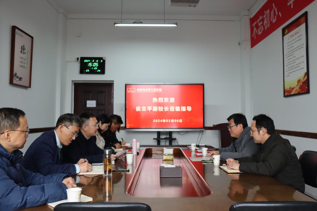3月6日下午,校党委委员、副校长侯北平,研究生院副院长庄海峰一行3人,莅临生化学院指导化工博士学位授权点及生物医药专硕点申报工作,并部署下一阶段工作。生化学院全体班子成员参加会议。