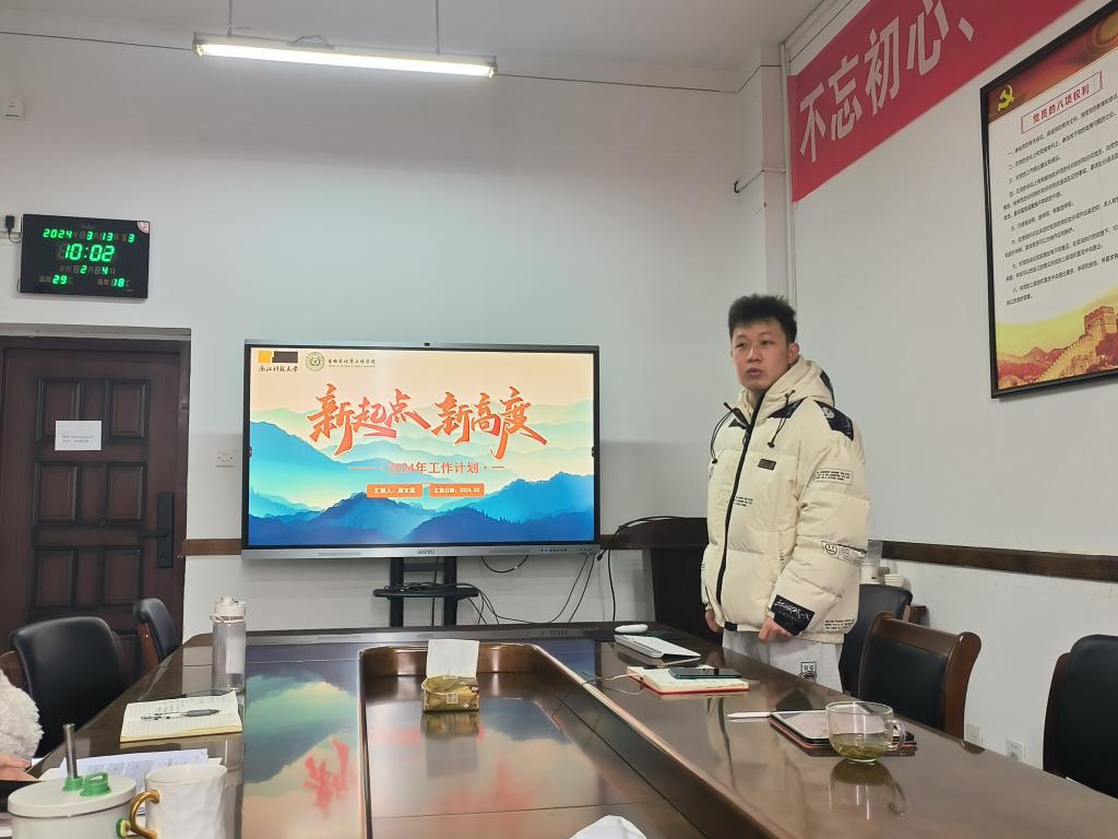 2020级本科生辅导员周文晟以“新起点 新高度——2024年工作计划”为主题,结合自身工作经历,从把握学生思想新动态、培养学生创造新成果、书写学生志愿新篇章、打造学生实践新平台、成就学生就业新辉煌五个方面出发,做好学生思想引领工作;聚焦学科竞赛,实现获奖数量、质量新的突破;继续扎实推动学生志愿服务工作,不断扩大志愿的深度和广度;探索社会实践新品台,引导学生将理论与实践相结合;做好点对点考研、就业帮扶工作,落实学生就业工作。