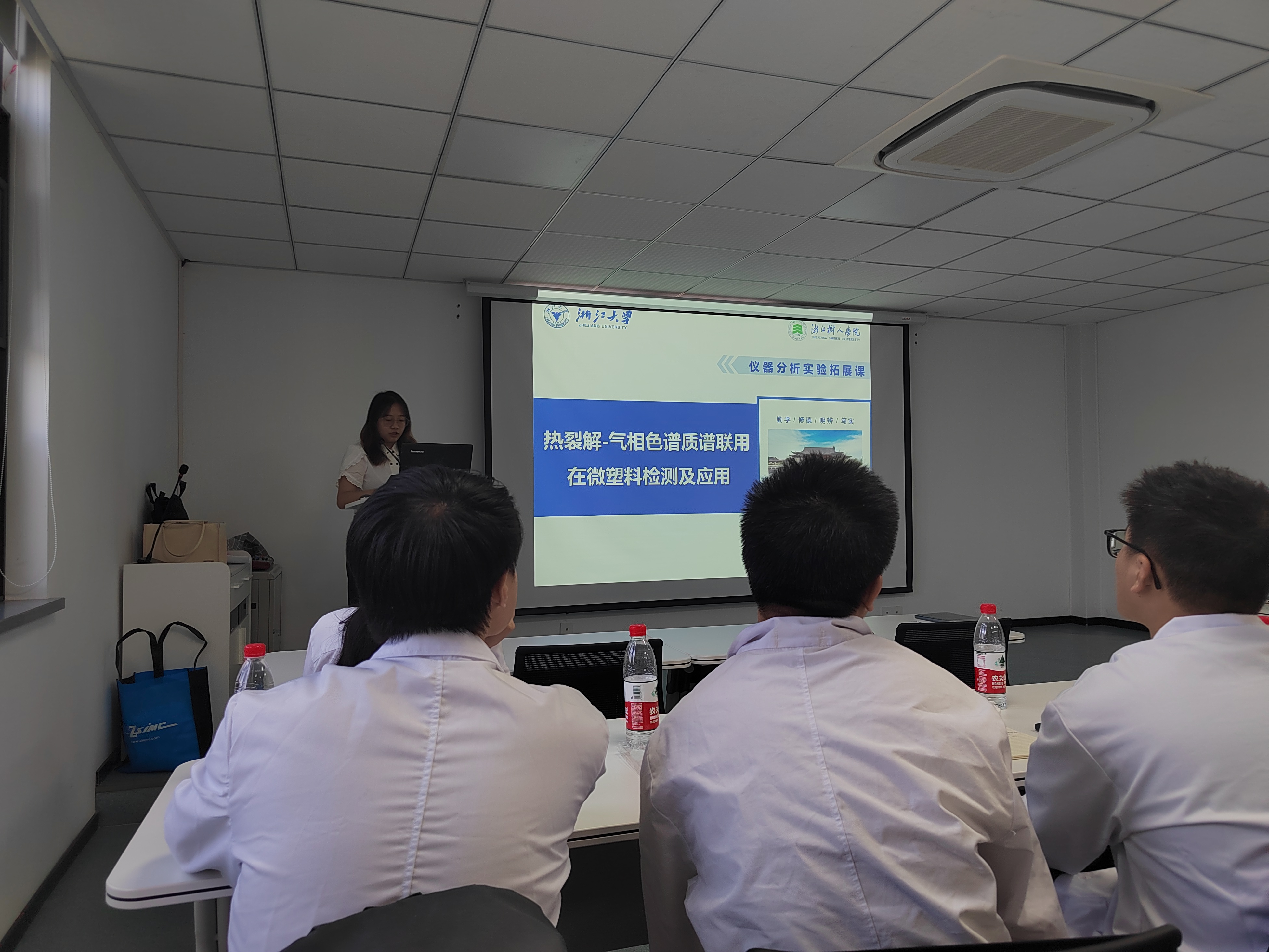 在课程中,同学们走进浙江树人学院光谱/色谱/质谱/元素分析教学实验室、医学检验教学实验室及微生物实训中心,接受小班化教学,学习了多种大型仪器的理论知识,如超临界流体色谱、热裂解气质联用、液质联用等,并上机实操,还在老师的引导下针对研究热点开展了微塑料和新污染物检测利器的演练。参与此次课程的吴磊鑫同学表示,此次拓展课程带领我们沉浸式体验“科研人”的一天,安排内容充实,上课形式新颖,让我们收获满满,是一门非常好的拓展课程。