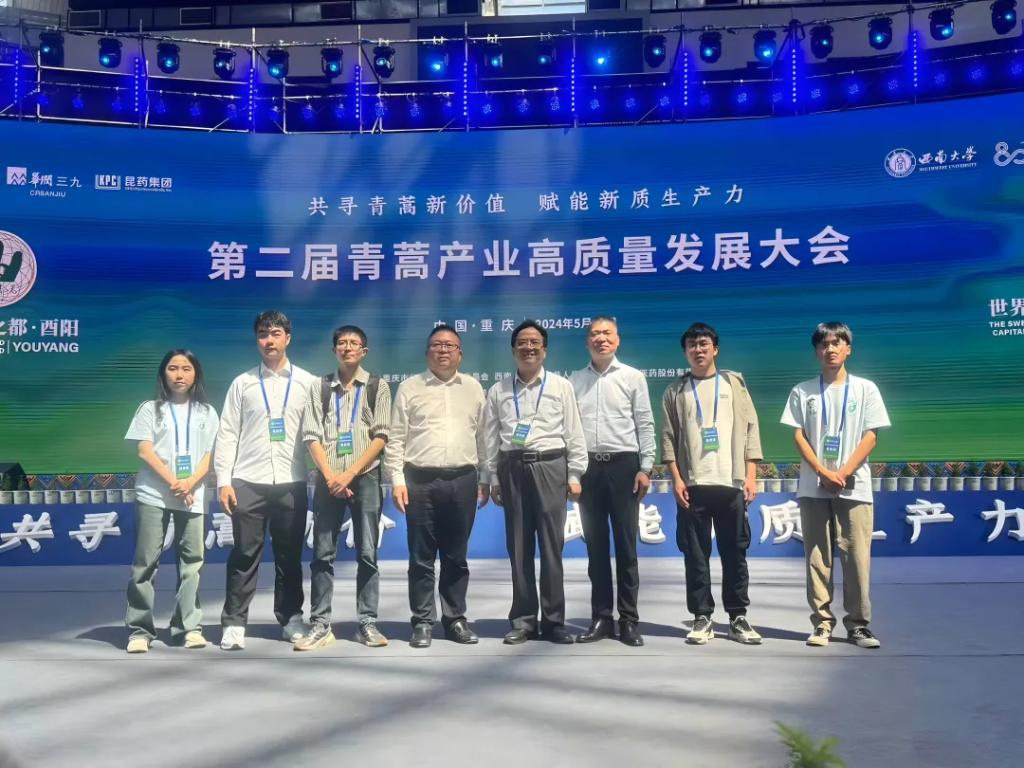 5月22-24日,第二届青蒿产业高质量发展大会在西南大学举行,本次大会由重庆市经济和信息化委员会、西南大学、酉阳县人民政府、华润三九医药股份有限公司指导,昆药集团股份有限公司主办。来自williamhill体育中文、上海交通大学、上海大学、华南农业大学、广东中医药大学等高等院校与中国科学院、中国中医科学院等科研机构的专家学者,全国有关青蒿产业发展相关协会组织、青蒿加工重点企业等负责人参加了会议,共同探讨青蒿产业高质量发展与未来,为做大做强青蒿大健康产业聚势赋能。我院大学生创新创业团队的陈小伟、程堉恒、郭宇煊、刘松强、陈思齐、李茜茜等受邀参加了本次大会。