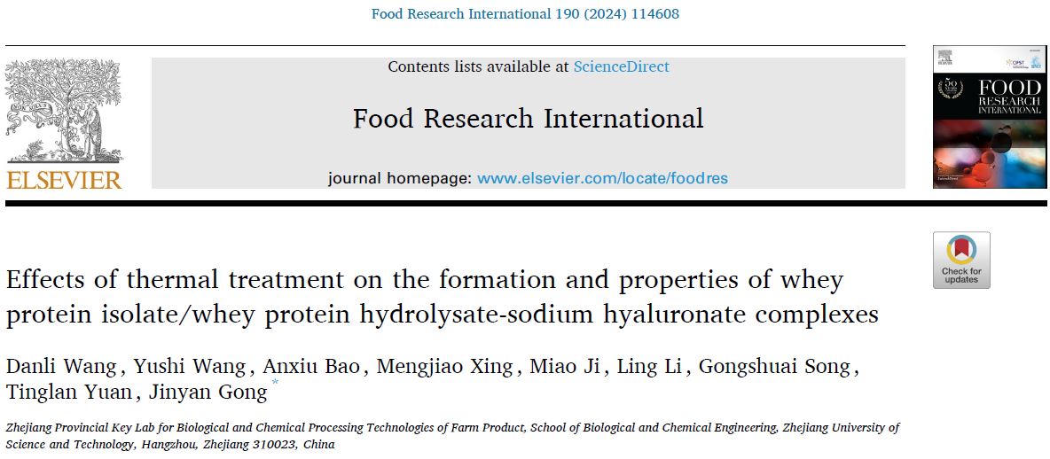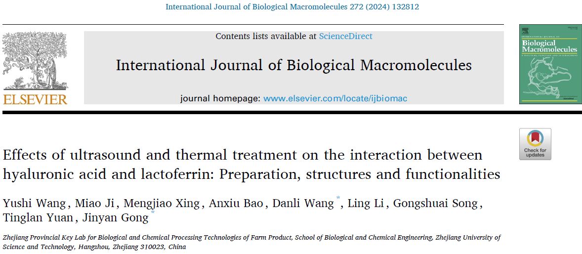 近日,龚金炎教授课题组王丹丽博士在食品、化学领域TOP期刊Industrial Crops & Products、Food Research International、International Journal of Biological Macromolecules发表论文“Whey protein isolate-stabilized gardenia fruit oil nanoemulsions: Ultrasonic preparation, characterization and applications in nutraceuticals delivery”“Effects of thermal treatment on the formation and properties of whey protein isolate/whey protein hydrolysate-sodium hyaluronate complexes”“Effects of ultrasound and thermal treatment on the interaction between hyaluronic acid and lactoferrin: Preparation, structures and functionalities”,对乳蛋白复合体系进行了全面研究。