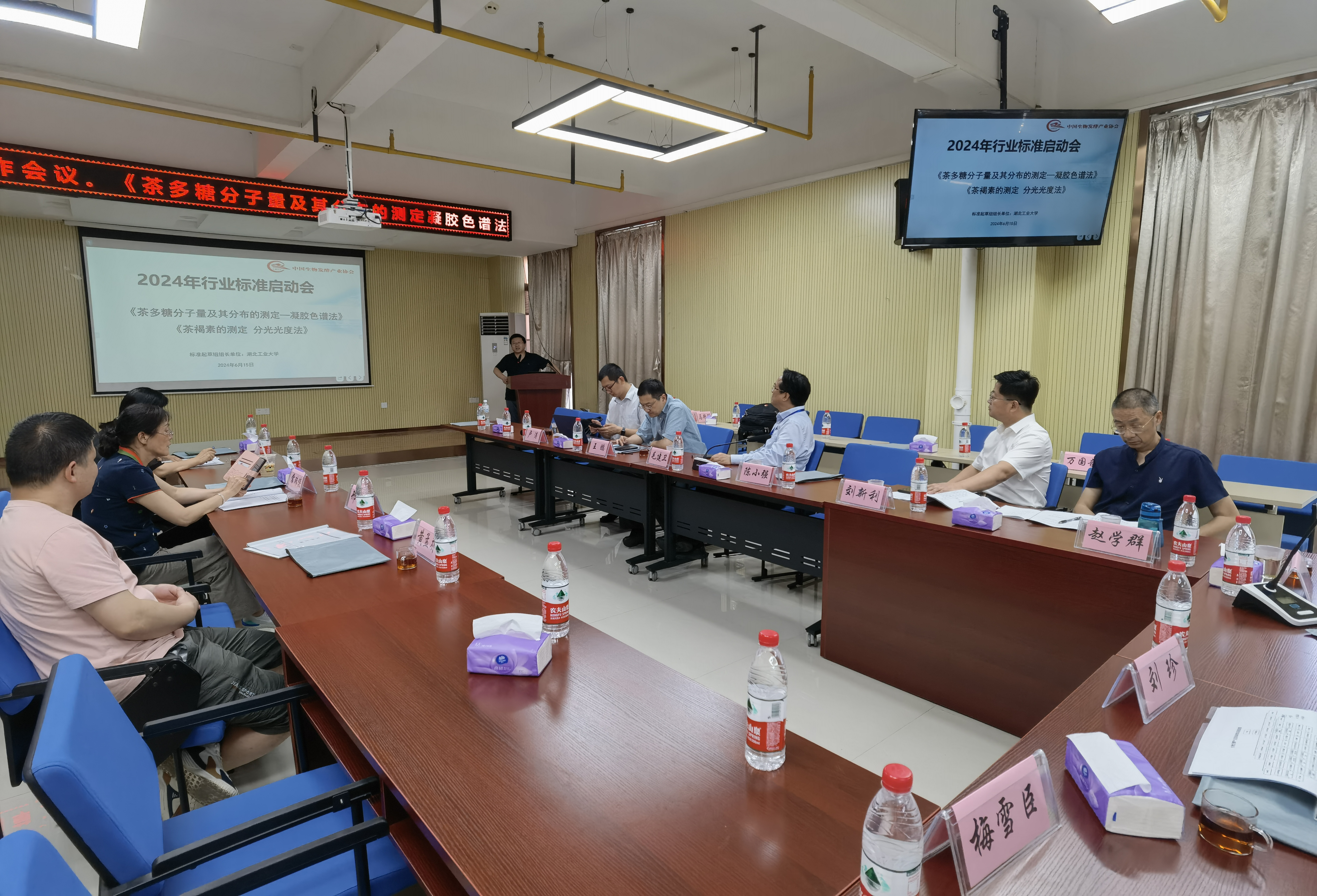 下午,我校参与制订的《茶多糖分子量及其分布的测定凝胶色谱法》、《茶褐素的测定分光光度法》2项工信部行业标准启动会暨第一次工作会同期召开,与会代表就标准的适用范围、原理、检测方法的可行性及实验验证等进行了热烈的讨论,梳理了下一步工作计划。本次会议的成功召开进一步完善了标准文本,有效推动了2项标准的起草工作。