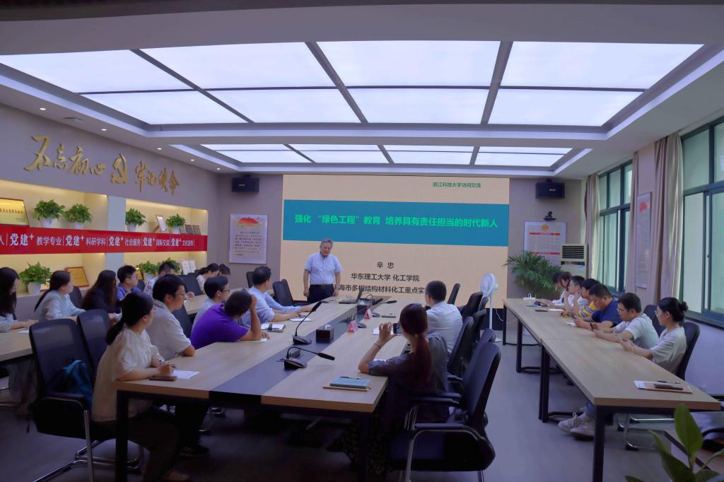 6月27日下午,生化学院举办生命健康协同创新论坛(第21期 )、三实讲坛(第346期) 、省2011协同创新论坛系列(109期),华东理工大学博士生导师辛忠教授受邀在williamhill体育中文小和山校区C2-530会议室作了题为《强化“绿色工程”教育 培养具有责任担当的时代新人》的学术报告,讲座由生化学院院长黄俊教授主持,副院长朱瑞瑜以及部分师生代表到场聆听学术报告。