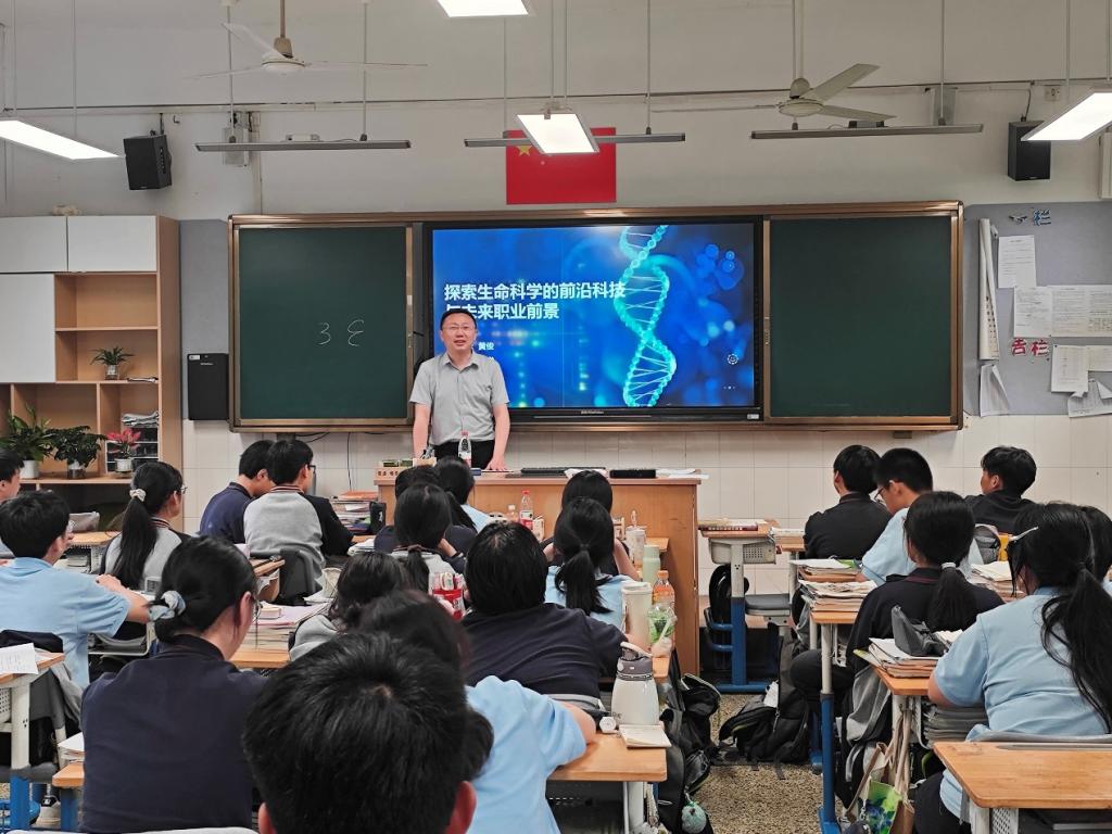 为响应国家科教兴国的战略号召,增进青少年对生命科学的了解,培养学生的生命科学素养,近日,生化学院黄俊院长走进杭州第四中学,受聘生涯规划教育讲师,开展了一场别开生面的生命科学科普实践活动,旨在通过生动的讲解和前沿知识的分享,让更多的青少年认识到生命科学的魅力,激发他们对科学探索的兴趣,从而为国家培养更多的科技创新后备力量。