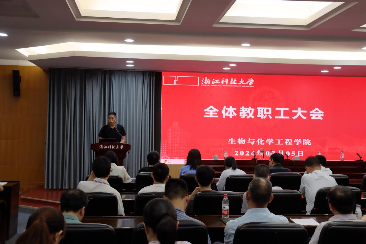 会上,院长黄俊从党建工作、人才引进、科研及社会服务、学科建设、研究生工作、国际交流、思政工作等方面回顾了上半年的工作进展和取得成绩。黄俊指出,近年来学院围绕一流应用研究型学院建设目标,不断凝心聚力,学院事业发展不断取得新成效。与此同时,学院也面临着更艰巨的任务和更大的挑战,全体教职工要有过“紧日子”和“苦日子”的准备及信心,以“三实”精神不断激励自身,在教学和科研上持续进步,共同绘就生化学院更美好的未来。