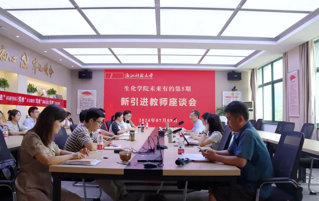 7月9日下午,生化学院举行“未来有约”第5期新引进教师座谈会。院长黄俊、党委书记路胜利、副院长朱瑞瑜及近两年入职的新教师参加座谈会。会议由路胜利主持。