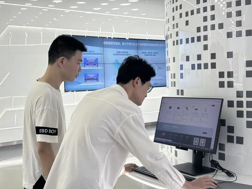 樊芳芳老师带领本科生和研究生首先参观国家先进计算产业创新中心展厅,深入了解了国产自主可控信息技术发展历程和新一代智算技术的发展情况;随后走进硅立方,学习了新型先进计算机的建设形态机内部结构;最后实地参观了整机的生产装配流程。参观结束后,同学们在体验机上操作了计算平台,进一步体验乌镇中心的超强计算能力。