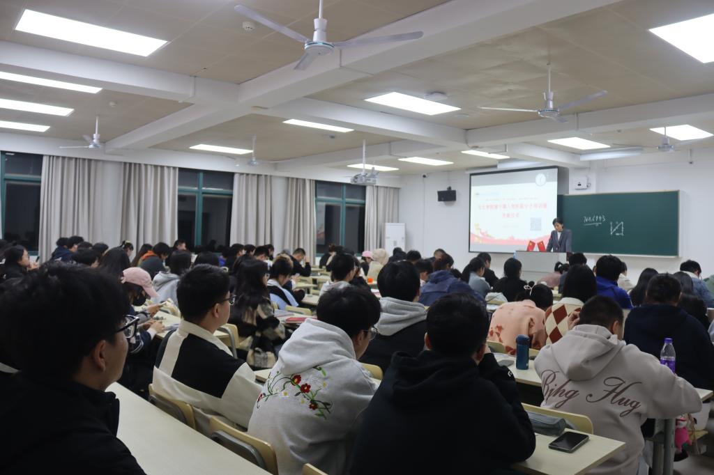 11月18日18:00,雄壮的中华人民共和国国歌在A2-422唱响,学院党校第十期入党积极分子培训班开班仪式隆重举行。学院党委书记路胜利、党委副书记王学宏、各师生党支部书记及98名入党积极分子学员出席开班仪式。本期党校培训主题为“深入学习贯彻党的二十届三中全会精神,践行立德树人初心使命”。开班仪式上,党委书记路胜利教授开讲第一次党课。