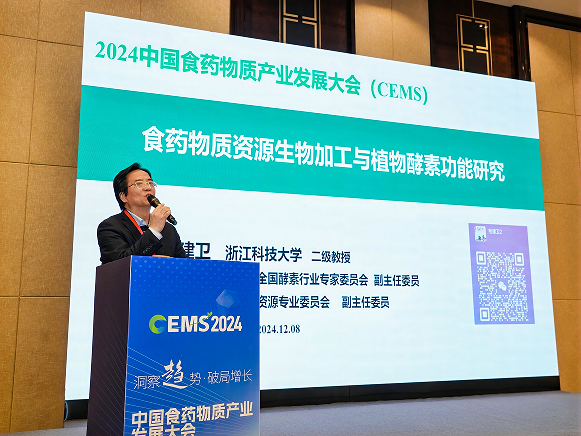 在“食药物质新质生产力前沿技术应用创新”论坛上,我院教授、浙江省农业生物资源生化制造协同创新中心主任毛建卫作题为“食药物质资源生物加工与植物酵素功能研究”的主题报告,并担任了论坛主持人。