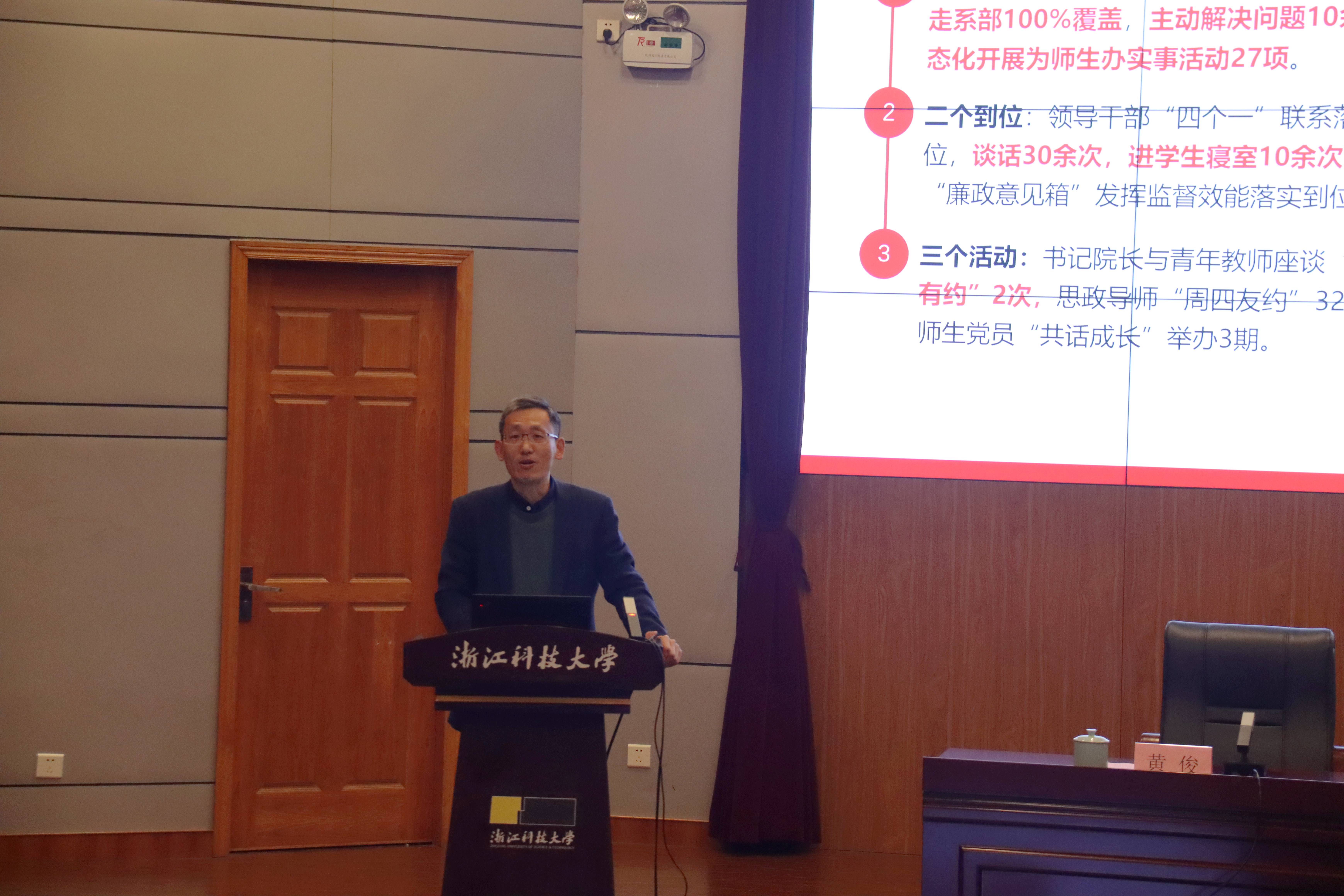 述职汇报环节,17位师生党支部书记和11位内设机构负责人依次上台。他们立足岗位职责,从基本情况出发,围绕党支部党建品牌建设,丰富党建内涵;围绕 “学科登峰”“一年一大事”战略推进学科和专业建设,阐述建设举措与成效,剖析不足,对未来工作进行规划。