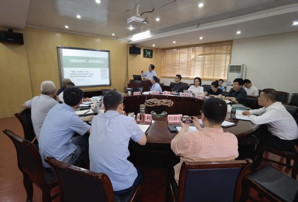 毛建卫作了“功能食品新时代、食药物质新风口”主题报告,他表示我国“食药物质”是座庞大的资源宝库,正成为大健康产业中的新风口。此外,还介绍了我院在食药物质生物发酵萃取方面的基础研究和产业应用成果。双方就食药物质新兴产业的发展,展开了热烈讨论。