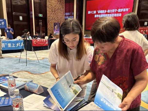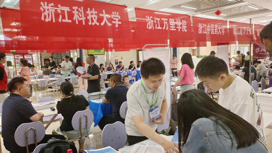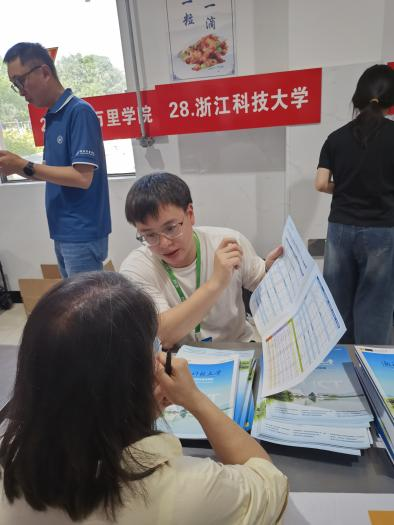 6月26日,杜田田老师在浙江师范大学行知学院体育馆开展咨询工作,向家长和考生们介绍学校往年的录取情况。以及当日在校内,孙蓉、杨佳瑶两位老师在校友之家为来校的家长、学生提供招生咨询服务。