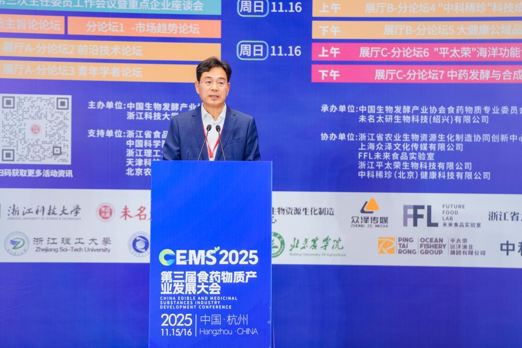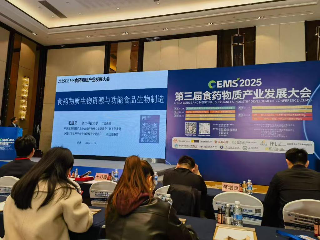 在同期举办的“食药物质前沿技术分论坛”上,我校毛建卫作题为“食药物质生物资源功能食品生物制造”的主题报告。他指出,食药物质产业具有鲜明的中国特色,以中国的道地原料为基础,融合中医中药智慧,承载中华健康理念与经典文化,不仅是我国具有深厚底蕴的历史经典产业,更具备潜力成为全球性的未来产业。