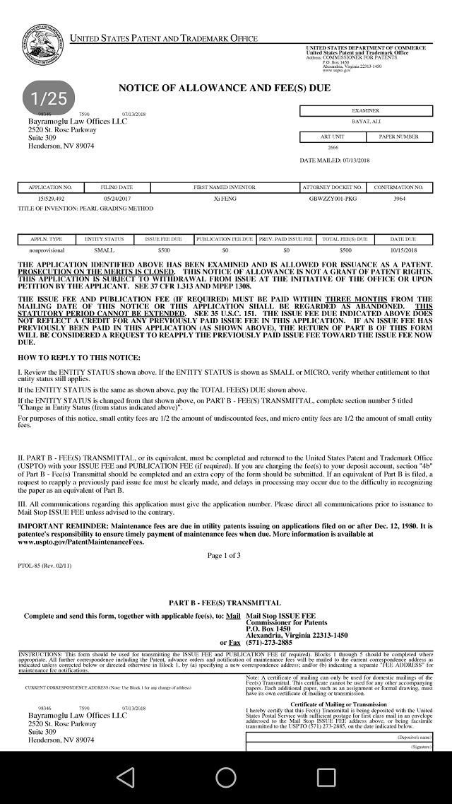 近日我院冯晞老师通过PCT专利合作合约途径向美国申请发明专利“珍珠分级方法Application Title: PEARL GRADING METHOD”获得授权。我国是淡水珍珠生产大国,多年来珍珠品质鉴定一直靠人工肉眼判断,而且市场检测标准比较混乱。