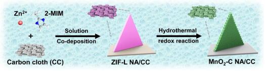 图1.δ-MnO2-C NA/CC电极制备过程示意图