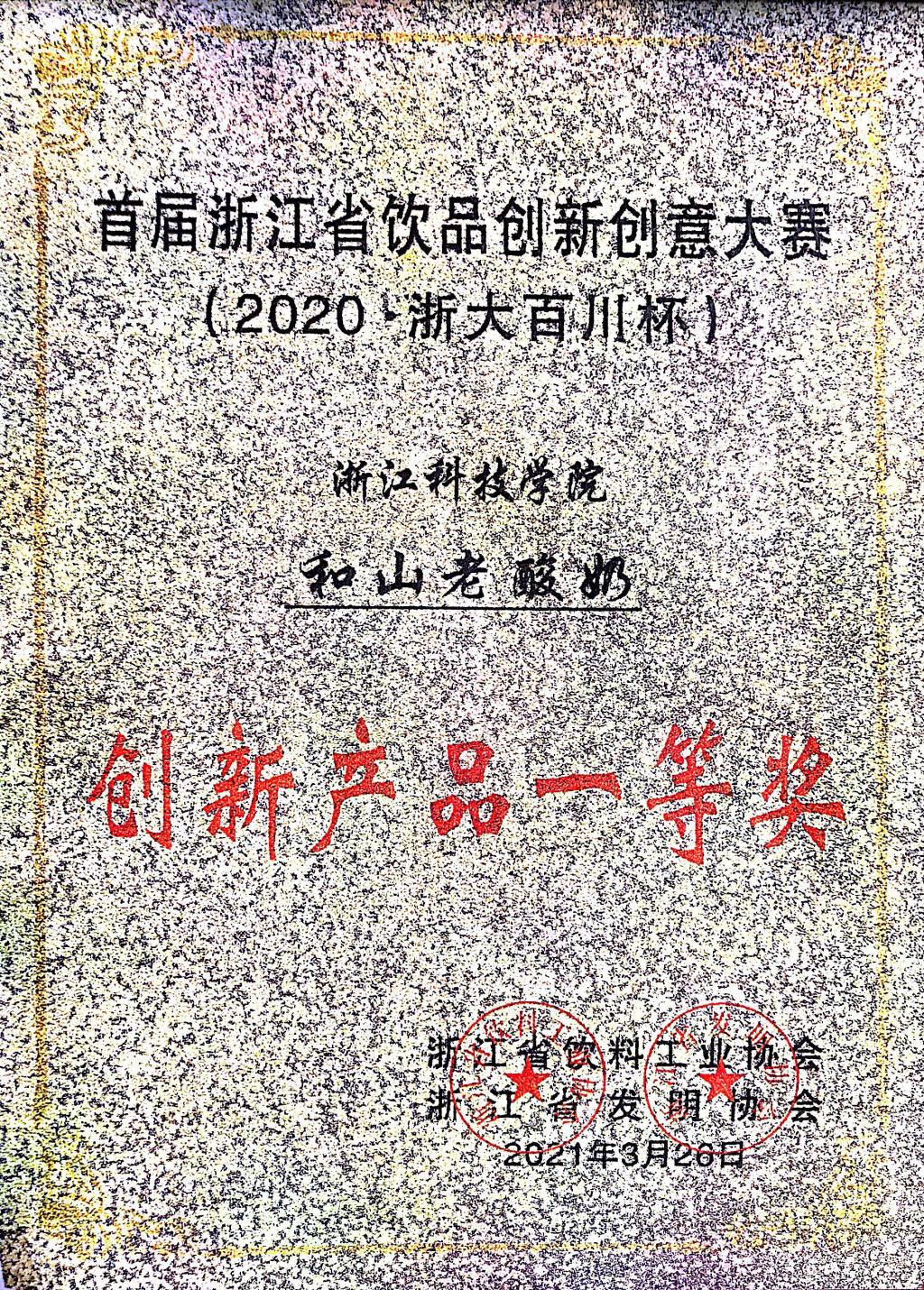 近日,我系学生作品“和山老酸奶”在“2020·浙大百川杯”首届浙江省饮品创新创意大赛中获得创新产品一等奖荣誉。