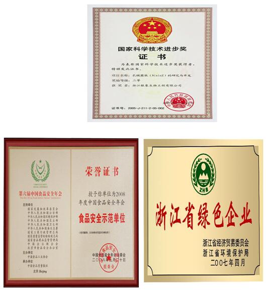图1 中心企业浙江新银象生物工程有限公司荣誉