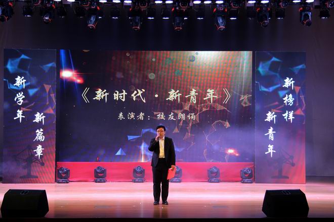 晚会由暖场节目《战台风》拉开序幕。院长刘士旺教授为本次颁奖典礼致辞,刘院长衷心感谢各位领导、老师、同学和企业家朋友光临颁奖典礼,衷心感谢企业家朋友在我院设立三实奖学金,关心大学生成长成才,关心高等教育;祝贺取得优异成绩、获奖的同学和团队;刘院长从师资力量、专业特色、学科科研产出、社会服务、人才培养成效以及学风教风六个方面阐述了学院近年来的发展和进步,并希望同学们认真学习党的十九大精神,在全院形成学先进赶先进的优良学风,鼓励先进,奖优促学;希望同学们迈进新时代踏上新征程,树立远大理想,励志学习,成长成才,崇尚科学,争做德才兼备的三实创新人才。同时也预祝本次三实奖学金颁奖典礼暨迎新晚会取得圆满成功。
