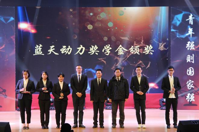 图9 王永江副院长等教师为蓝天动力三实奖学金获得者颁奖