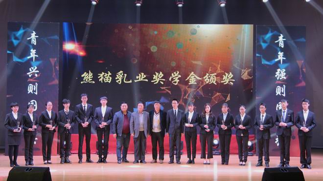 图7 浙江熊猫乳业集团股份有限公司董事长李作恭先生为三实奖学金获得者颁奖