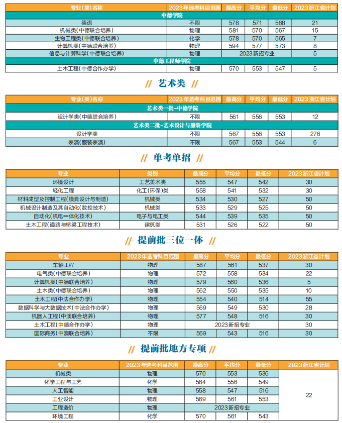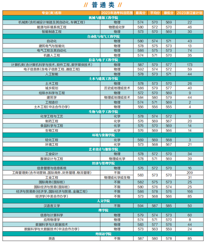 浙江科技学院2023年分省分专业招生计划及浙江省2022年录取分数参考